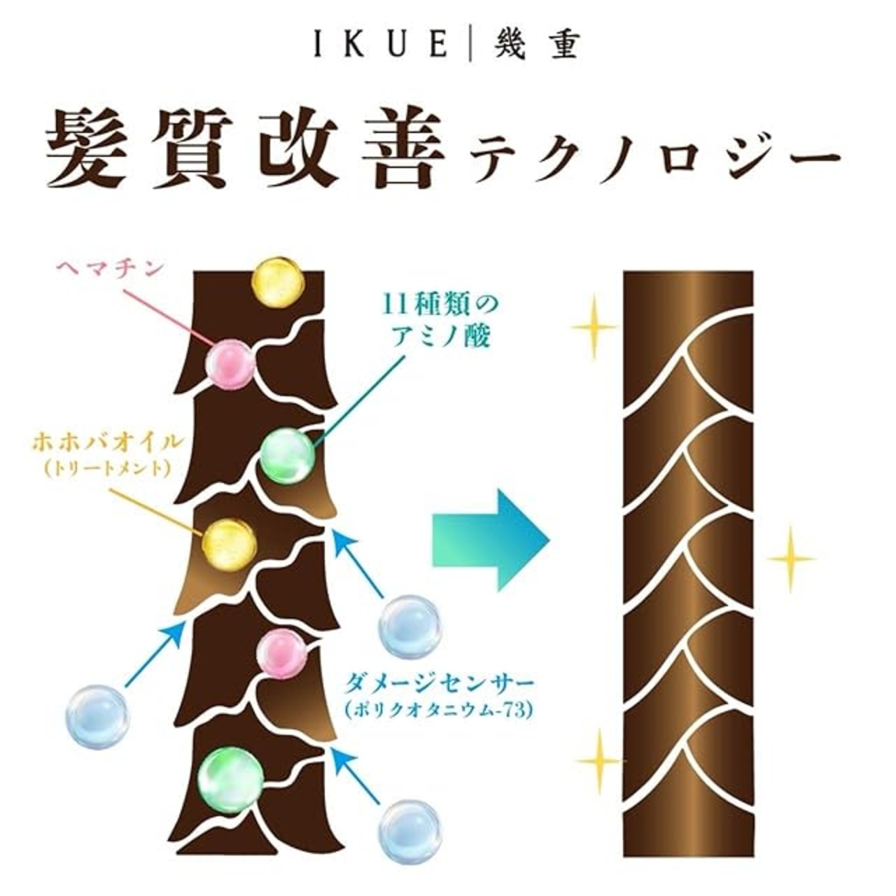 【豊富な保湿と補修効果】 ホホバ油と他の保湿成分が髪の芯まで潤いを提供し、ダメージヘアを内部から修復します。これにより触れるたびに柔らかくふわさらな髪を実感できます。