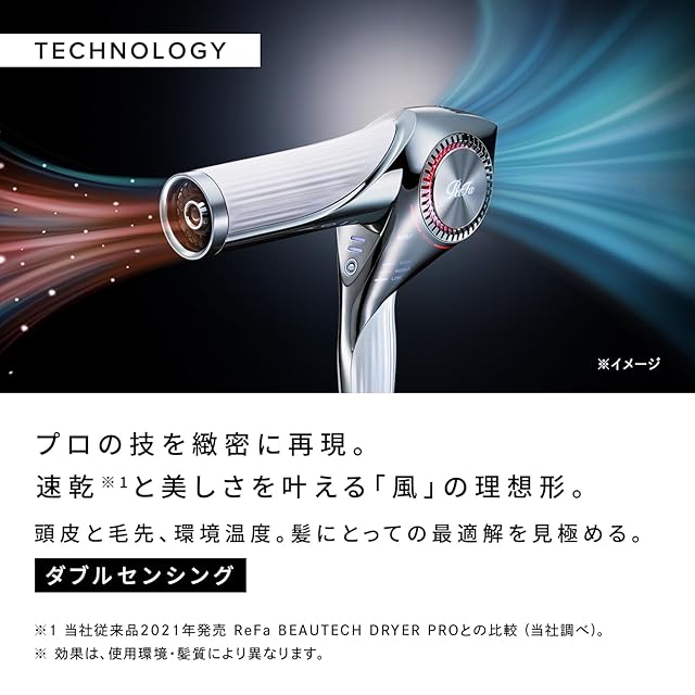 プロの技を精緻に再現。速乾※と美しさを叶える「風」の理想形。※当社従来商品2021年発売 ReFa BEAUTEC DRYER PROとの比較(当社調べ)