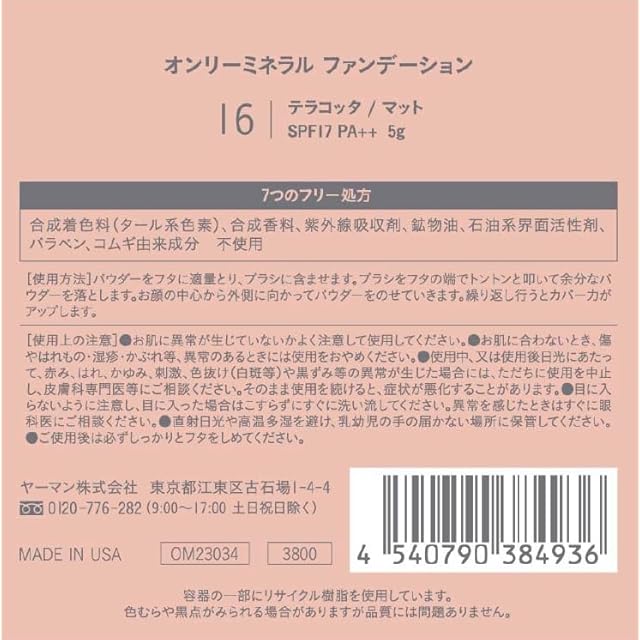 商品名:オンリーミネラル(ONLY MINERALS) ファンデーション 16 テラコッタ 5g SPF17/PA++ ミネラル100%