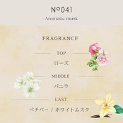 【Incense tone:香調】● No.041 [TOP]:ローズ/[MIDDLE]:バニラ/[LAST]:ベチバー、ホワイトムスク