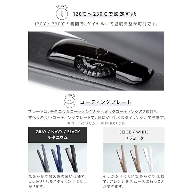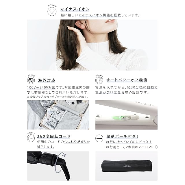 【ストレートヘアアイロン】MAX230℃・360度回転コード・専用耐熱ポーチ・マイナスイオン