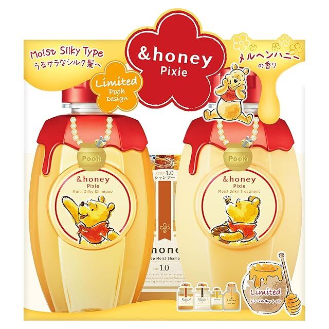 【限定デザイン プーさん 2024 Limited】 &honey (アンドハニー) ピクシー モイストシルキー 限定ペアセット [ シャンプー/トリートメント /4stepトラベルキット ] | シャンプー・コンディショナーセット | emishop315