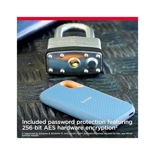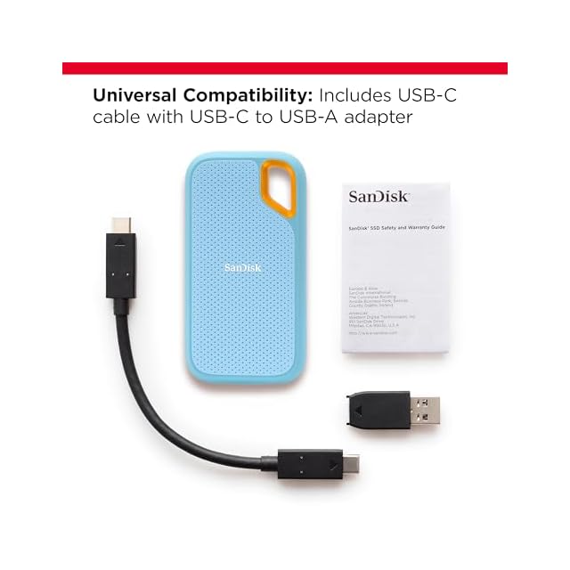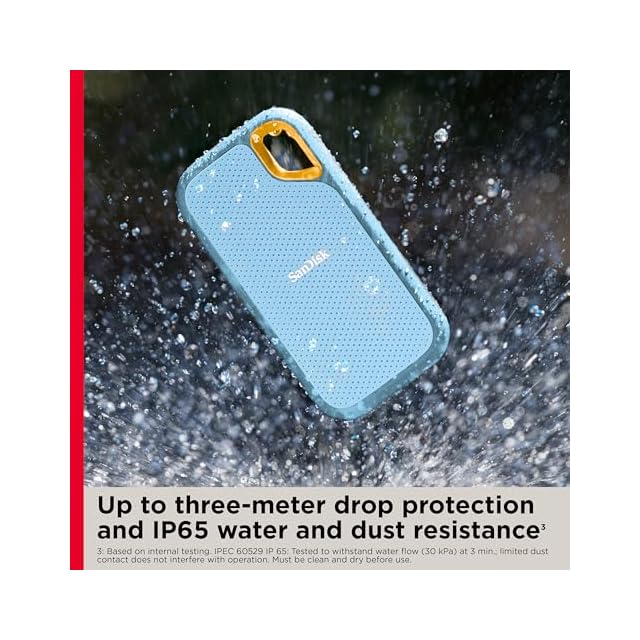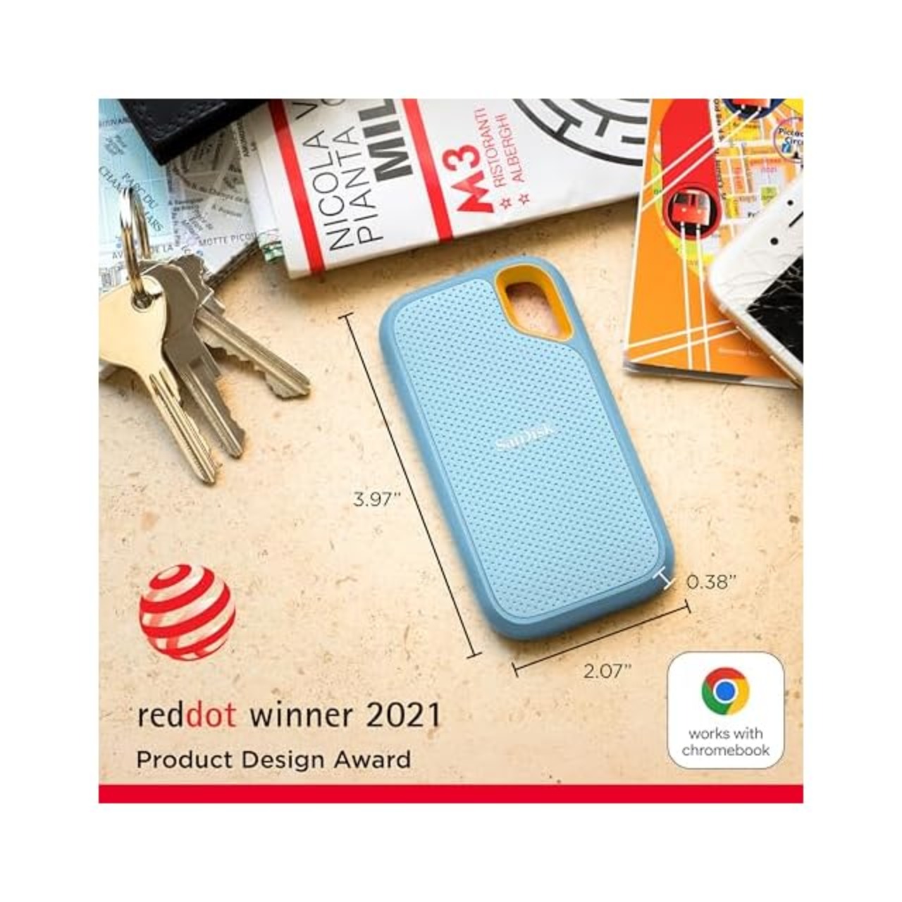 SanDisk (サンディスク) 1TB Extreme (エクストリーム) ポータブルSSD - 最大1050MB/秒 USB-C USB 3.2 Gen 2 IP65の耐水および防塵 アップデートされたファームウェア スカイブルー - 外付けソリッドステートドライブ - SDSSDE61-1T00-G25B | emishop315