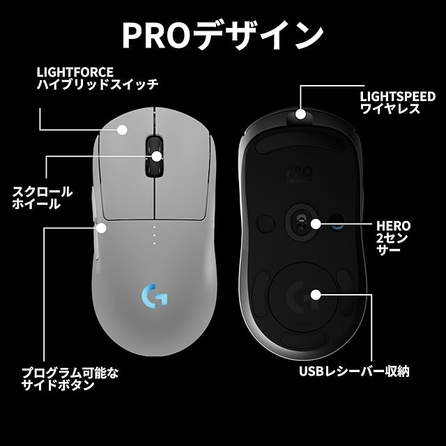 Logicool G PRO 2 LIGHTSPEED 44K DPI ワイヤレス ゲーミングマウス G-PPD-002XWL-WH 軽量 80g LIGHTFORCE ハイブリッドスイッチ HERO2 センサー USB Type-C 95時間連続使用可能 POWERPLAY 無線 充電 対応 FPS ゲーミング マウス PC windows ホワイト 国内正規品 | emishop315