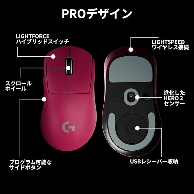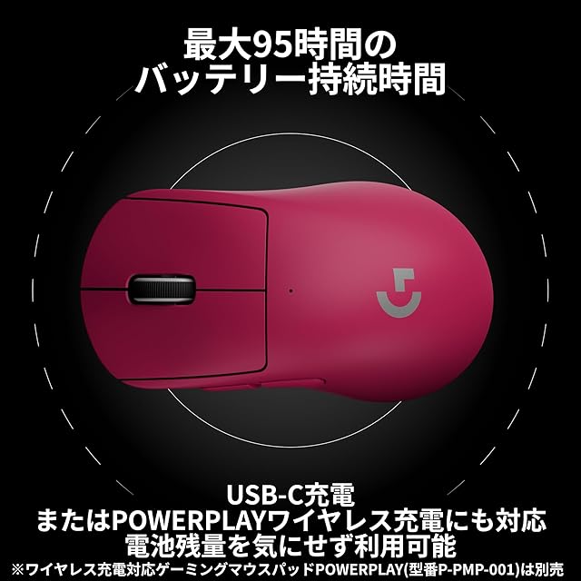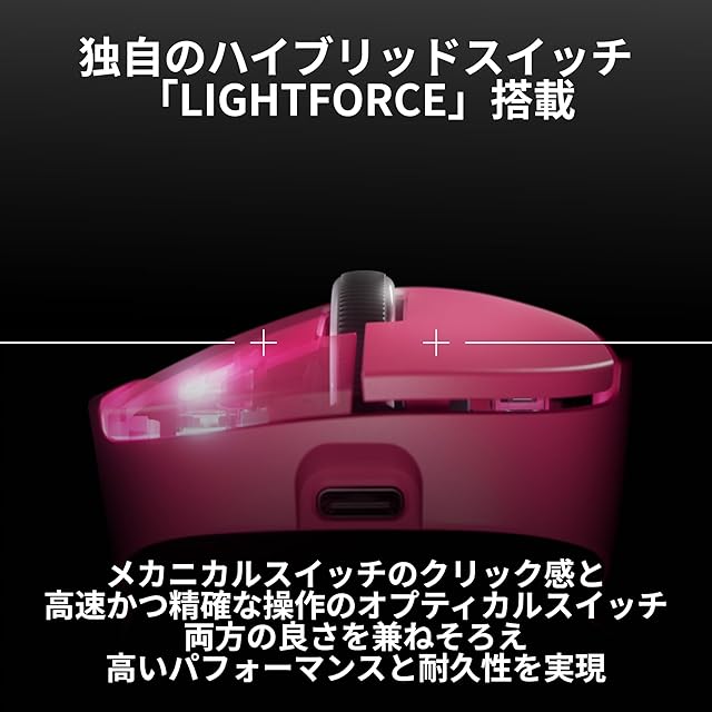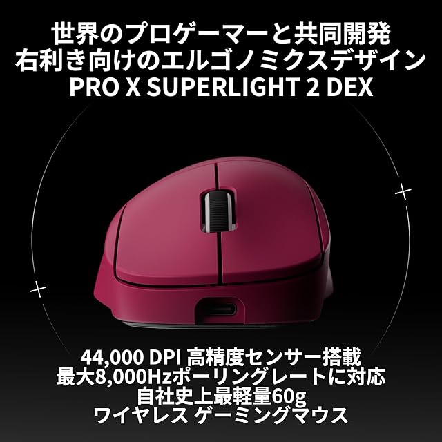 商品名:Logicool G 8000Hz ポーリングレート PRO X SUPERLIGHT 2 DEX 44K DPI ワイヤレス ゲーミングマウス GPROXSL-WLDEXMG エルゴノミクス 右手 軽量 60g LIGHTFORCE ハイブリッドスイッチ LIGHTSPEED USB Type-C 充電 POWERPLAY 対応 ゲーミング マウス 無線 windows マゼンタ 国内正規品
