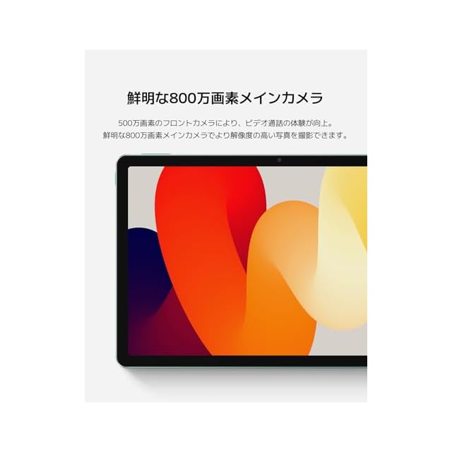 【8,000mAh大容量バッテリー】外出時や動画観賞時、またはオンライン会議にも、バッテリー切れの心配なく安心してお使いいただけます。鮮明な800万画素メインカメラでより解像度の高い写真を撮影できます。 また、500万画素のフロントカメラにより、ビデオ通話の体験が向上します。