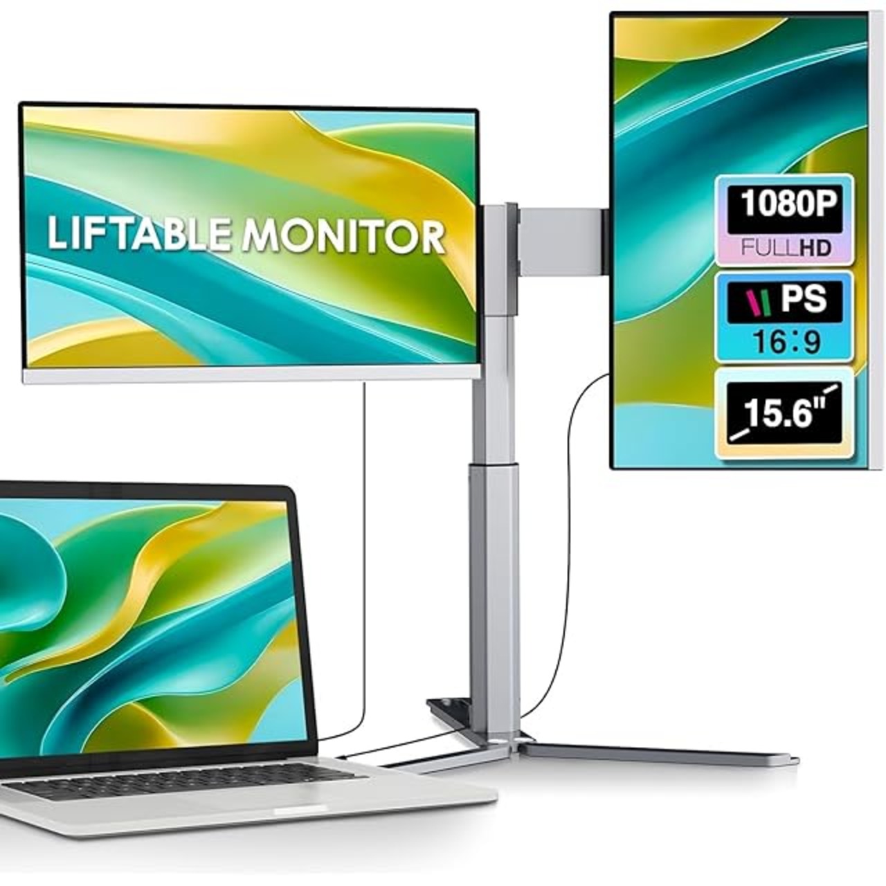 LivElect 15.6インチ デュアルモバイルモニター【360°回転モバイルモニター】デュアルディスプレ 2画面モバイルディスプレイ トリプル 全機種対応 USB-C接続 FHD1080P スタンドアーム付き マルチ画面 収納バッグ付き 【2年間のメーカー】Z2