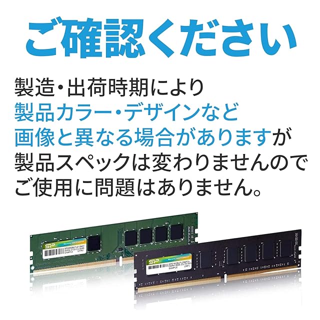 商品名:シリコンパワー SP Silicon PowerデスクトップPC用メモリ DDR4-2666(PC4-21300) 16GB×1枚 288Pin 1.2V CL19 SP016GBLFU266B02