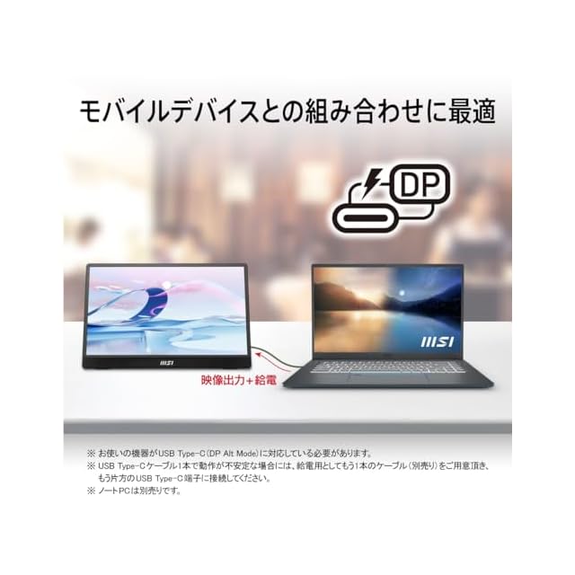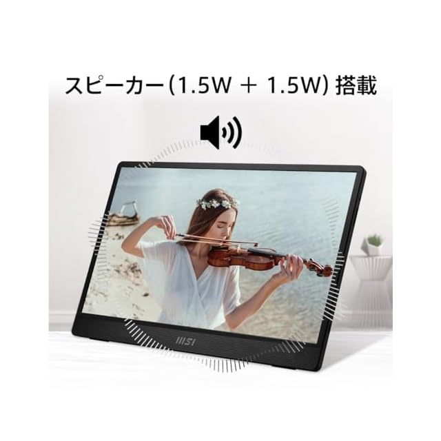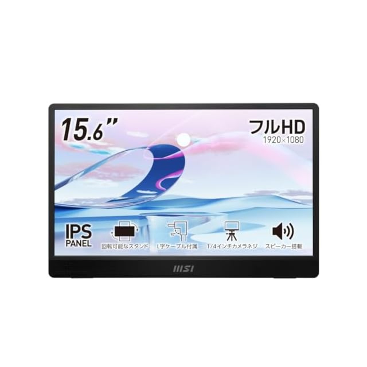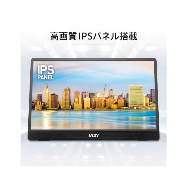 商品名:MSI モバイルモニター PRO MP161 E2 15.6インチ/フルHD/IPSパネル/60Hz/薄型設計/高性能スタンド/片側L字ケーブル/スリーブケース/高性能スタンド付き/スピーカー(1.5W + 1.5W)/HDMI/USB Type-C/メーカー3年