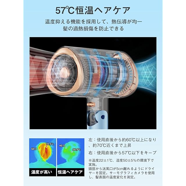 【57℃恒温設計&安心安全機能】髪と地肌にやさしい57℃前後を自動キープし、過熱時には電源が自動OFF。ご購入から1年間の付きで、万が一の際も安心サポート。※本製品は日本国内専用(AC100V)。海外でご使用の際は海外旅行用変換プラグをご利用ください。