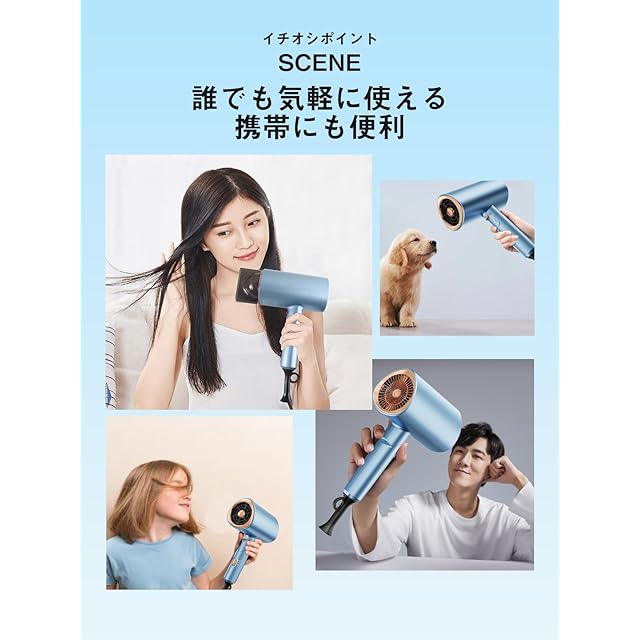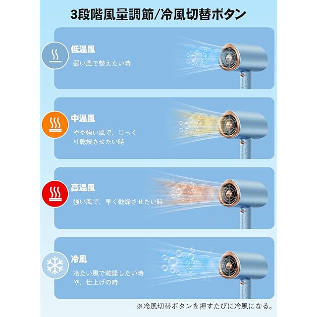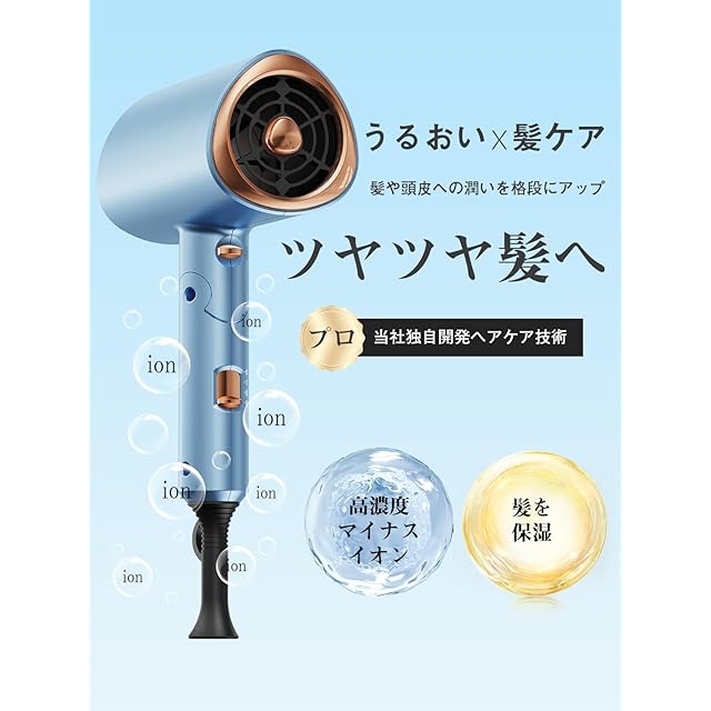 商品名:ドライヤー 2025進化モデル・収納ホルダー付属 ヘアドライヤー 速乾 大風量 高速モーター 髪質改善 高濃度マイナスイオン 速乾ドライヤー 3段階温度調節 冷風/熱風 静音 ノズル付き ヘアサロン 家庭用/出張用/旅行用 PSE認証済み ブルー