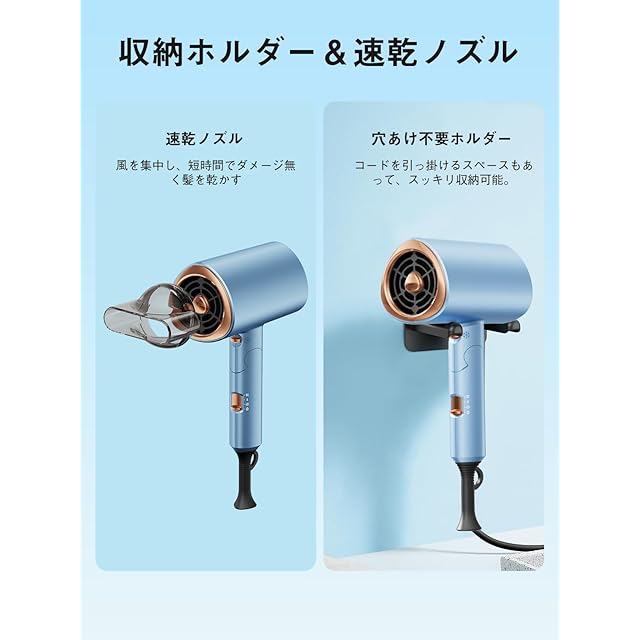 ドライヤー 2025進化モデル・収納ホルダー付属 ヘアドライヤー 速乾 大風量 高速モーター 髪質改善 高濃度マイナスイオン 速乾ドライヤー 3段階温度調節 冷風/熱風 静音 ノズル付き ヘアサロン 家庭用/出張用/旅行用 PSE認証済み ブルー