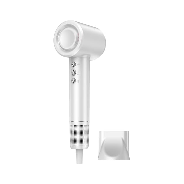 商品名:ドライヤー【2025進化モデル・20s速乾】大風量 高速ヘアドライヤー 2億高濃度マイナスイオン 静電気抑制 NTC温度制御システム 過熱保護 恒温ヘアケア 髪質改善 5段階温度調節&3段階風量 【温冷リズム】 マグネット式ノズル付き 小型 コンパクト 静音 軽量 旅行/サロン/家庭用/プレゼント PSE認証済み ホワイト
