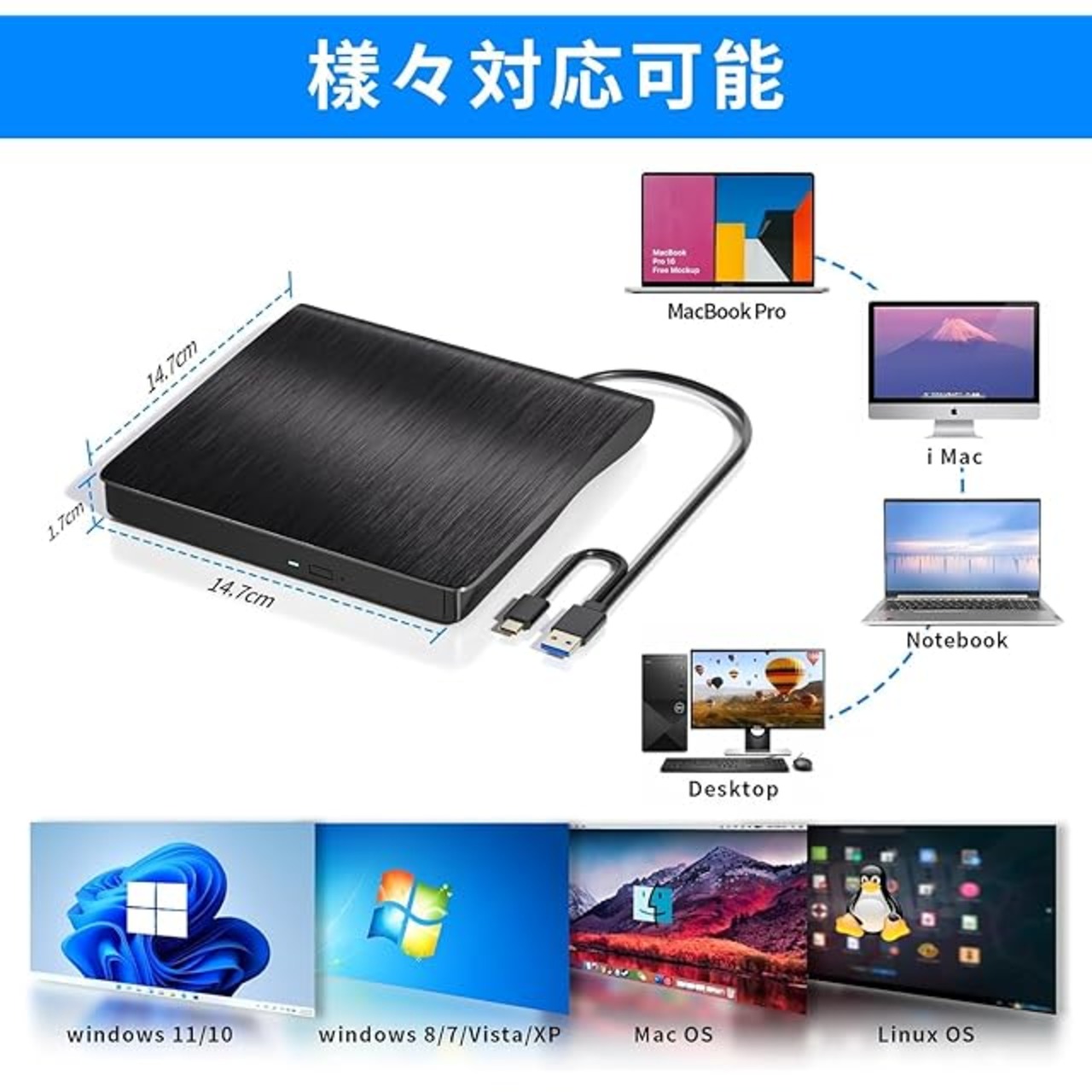 商品名:ブルーレイドライブ外付け BDプレイヤー再生読み書usb-aと usb-c(type-c) 対応外付け ポータブルBD Windows7-11/MAC OS対応 一年 日本語取扱書付き(black)