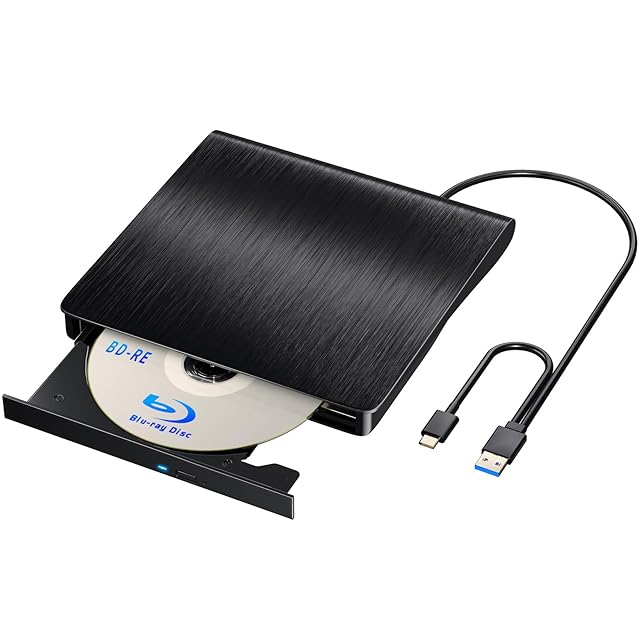 ブルーレイドライブ外付け BDプレイヤー再生読み書usb-aと usb-c(type-c) 対応外付け ポータブルBD Windows7-11/MAC OS対応 一年 日本語取扱書付き(black)