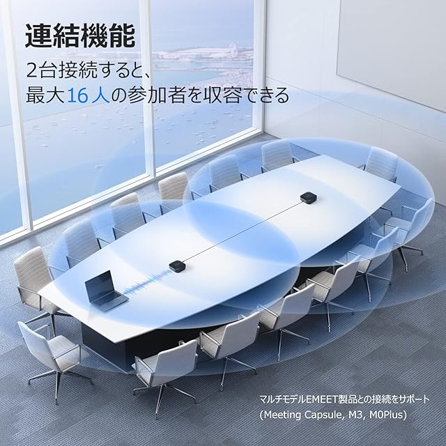 【大規模な会議にも対応可能】この集音マイクは連結機能を使用すると、EMEETの専用連結ケーブルで2つの会議用スピーカーフォンを接続し、16名までの参加者を対応できます。この機能は、Meeting Capsule、M3、M0 Plus、Luna PlusなどのEMEET製品に対応しており、小規模な会議から大規模な会議までサポートでき、さまざまな状況に簡単に処理できます。
