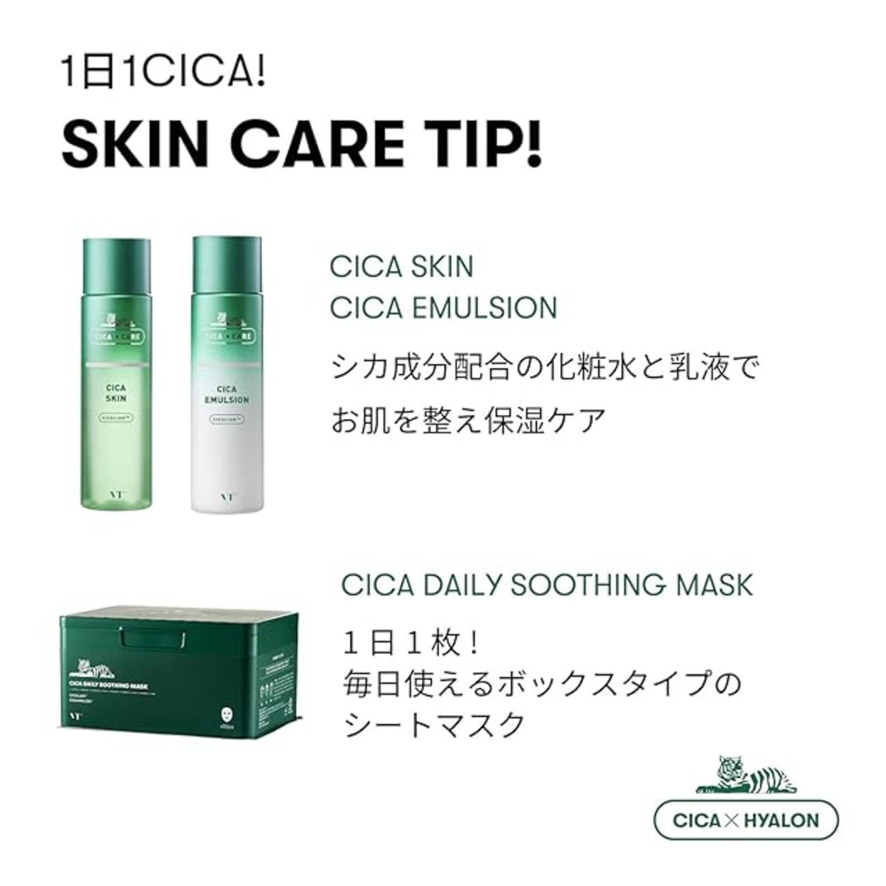 ?【CICAはどれも同じじゃない】VTのシカリオは研究を重ねて開発されたこだわりの成分です。原料のツボクサエキスにグリーンプロポリス・3重ヒアルロン酸・センテラ4Xコンプレックスを配合しています。