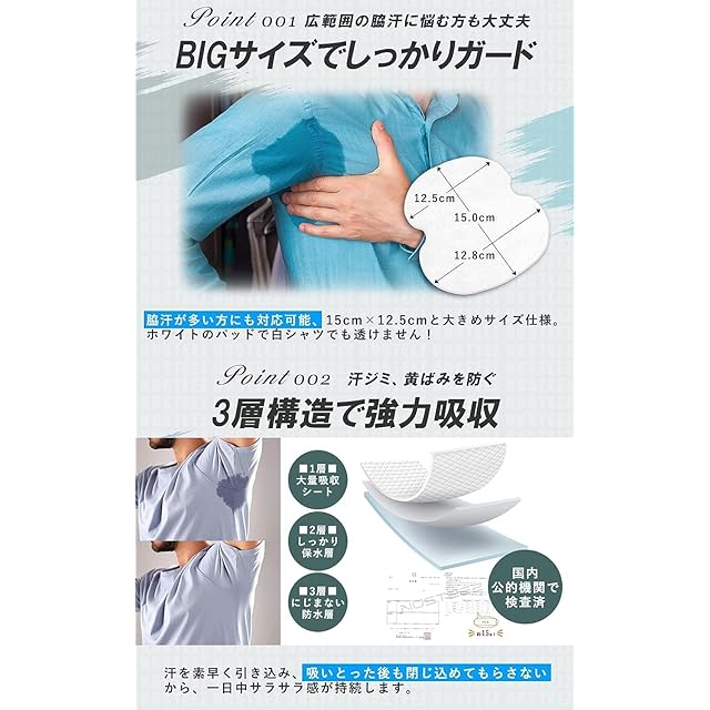 ?特殊3層シートによる脇汗吸収量15ml ※国内公的機関で検査済