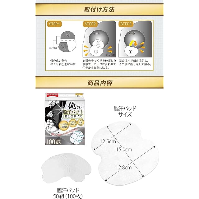 商品名:NOSTEEZ 俺の脇汗パッド BIGサイズ わきあせパット あせわきパッド メンズ100枚 (白)