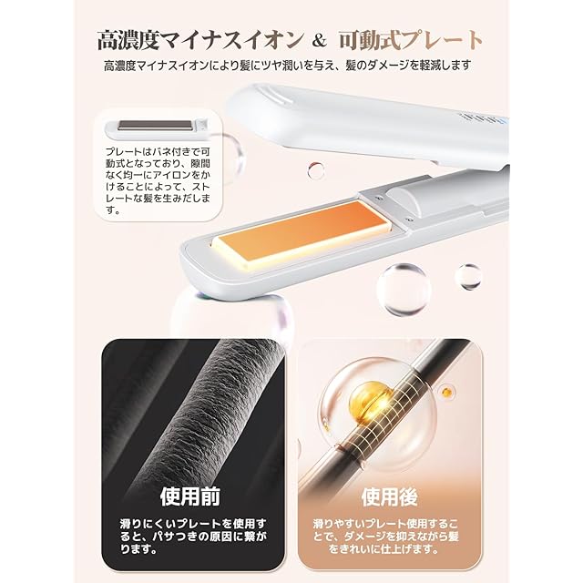 ヘアアイロン コードレス 2WAY カール/ストレートヘアアイロン 19mm プロ仕様200℃ TYPE-C充電 3200mAh大容量 140℃〜200℃4段階温度調整 自動電源OFF 開閉ロック ミニ 小型 持ち運び便利 男女兼用 家庭/旅行/出張/通勤用 贈り物 MONUSO (ホワイト) | emishop315