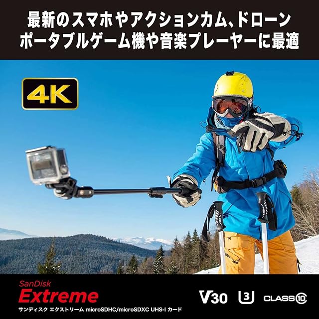圧倒的にリアルな5Kと4K UHD3。 ビデオスピードクラスU3およびV30に対応し、鮮明な5K3の主観映像を録画し高解像度の静止画を引き出すことができます。4 3 フルHDビデオ(1920x1080)、4K UHDビデオ(3840x2160)、5K(5120x2880)のサポートについては、ご使用の機器、ファイルサイズ、解像度、圧縮率、ビットレート、撮影内容、その他の状況に依存します。 4 UHSビデオスピードクラス30(V30)は、30MB/秒のビデオキャプチャレートを維持し、UHSスピードクラス3はUHS対応ホスト機器でのリアルタイムビデオ録画に対応するよう作られたパフォーマンスオプションとして指定されています。