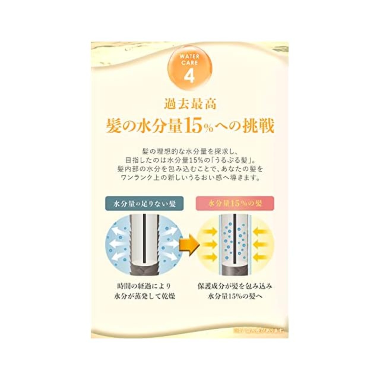 髪を美容水で包み込む「新ウォーターパック美容」で水分量の高いみずみずしい髪を実現します。