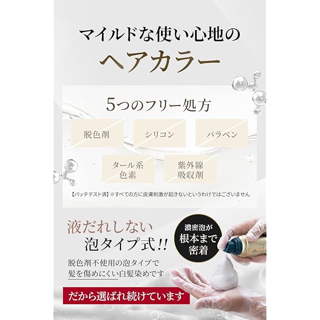 大人気「空気で染める」カンタン手軽な白髪染めがリニューアル! 「ヘアボーテエクラ ボタニカルエアカラーフォームEX」は、ワンプッシュでムースを出し、髪になじませて5分置くだけで白髪をムラなくつややかに染め上げます。脱色剤を一切使用しない処方で髪を傷めにくい処方はそのままに、ハリ・コシ成分として加水分解ケラチンを配合。ダメージ髪をケアし、色持ちアップにも。もちろん、うるおいを与えるボタニカル成分や10種の和漢植物エキスも配合、ツヤとうるおいを与えて美しく輝く美髪を育みます。 さわやかなフレッシュグリーン香りで、ツンとくる刺激臭も気にならず、ストレスなくホームカラーリングをお楽しみいただけます。