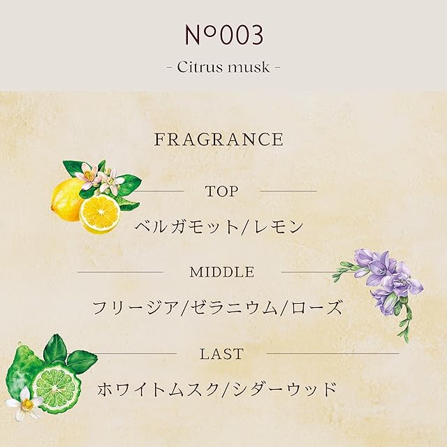 【Fragrance:香り】No.003:清潔感ある心地よいシトラスムスクの香り