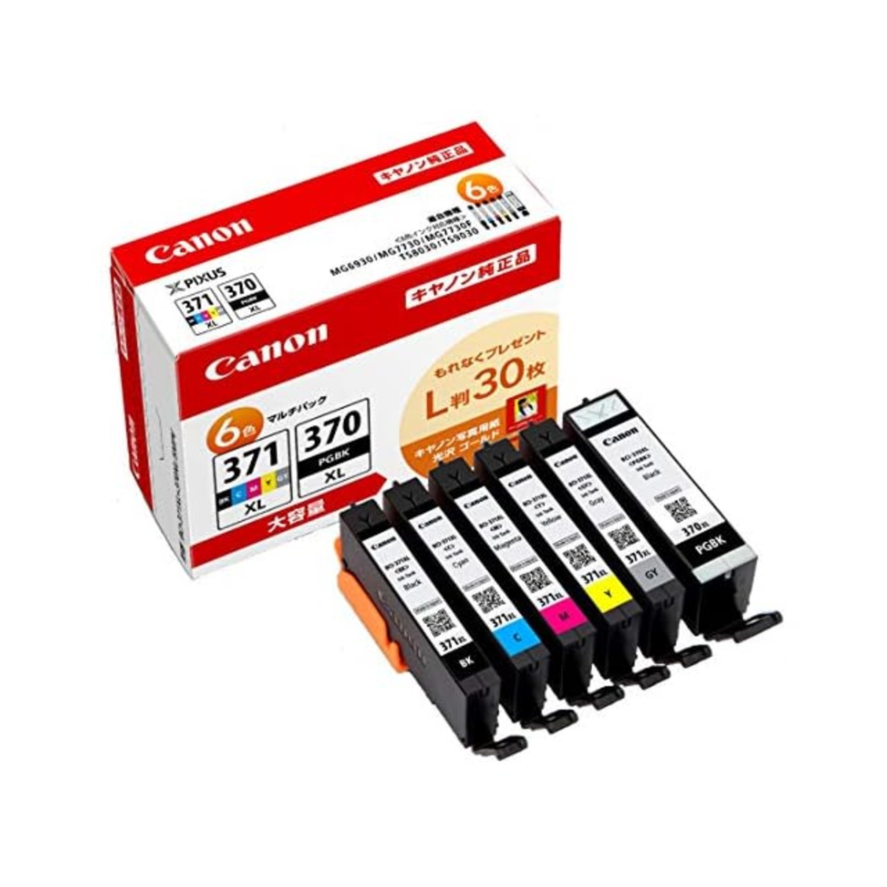 キヤノン Canon 純正 インクカートリッジ BCI-371XL(BK/C/M/Y/GY)+370XL 6色マルチパック 大容量タイプ 【L判写真用紙30枚付】BCI-371XL+370XL/6MPV | emishop315