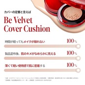 毛穴、くすみ肌の悩み解決 : リニューアルされたビーベルベットカバークッションは、毛穴や気になるくすみカバーに集中し、肌の悩みを解決するために設計されました。薄くきめ細やかに肌に密着するNMFカバーパウダーが毛穴やくすみを完璧にカバーし、きれいな肌を保つことができます。