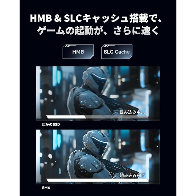 【低消費電力&高耐久】GM6は高度な複合電源IC(PMIC)を搭載し、エネルギーを最適に分配することで消費電力を抑え、SSDの寿命を延ばします。さらに、薄型(0.5㎜)グラフェン放熱パッドにより、長時間のゲームプレイや動画編集でも発熱を抑え、パフォーマンスの低下を防ぎます。