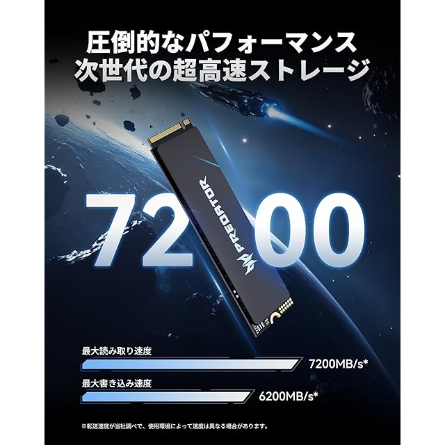 商品名:Acer Predator M.2 SSD 1TB GM6 NVMe2.0 2280 PCIe Gen4×4 超高速(最大読み取り:7200MB/s、最大書き込み:6200MB/s) 内蔵SSD 高耐久 3D NAND PS5動作確認済み メーカー5年