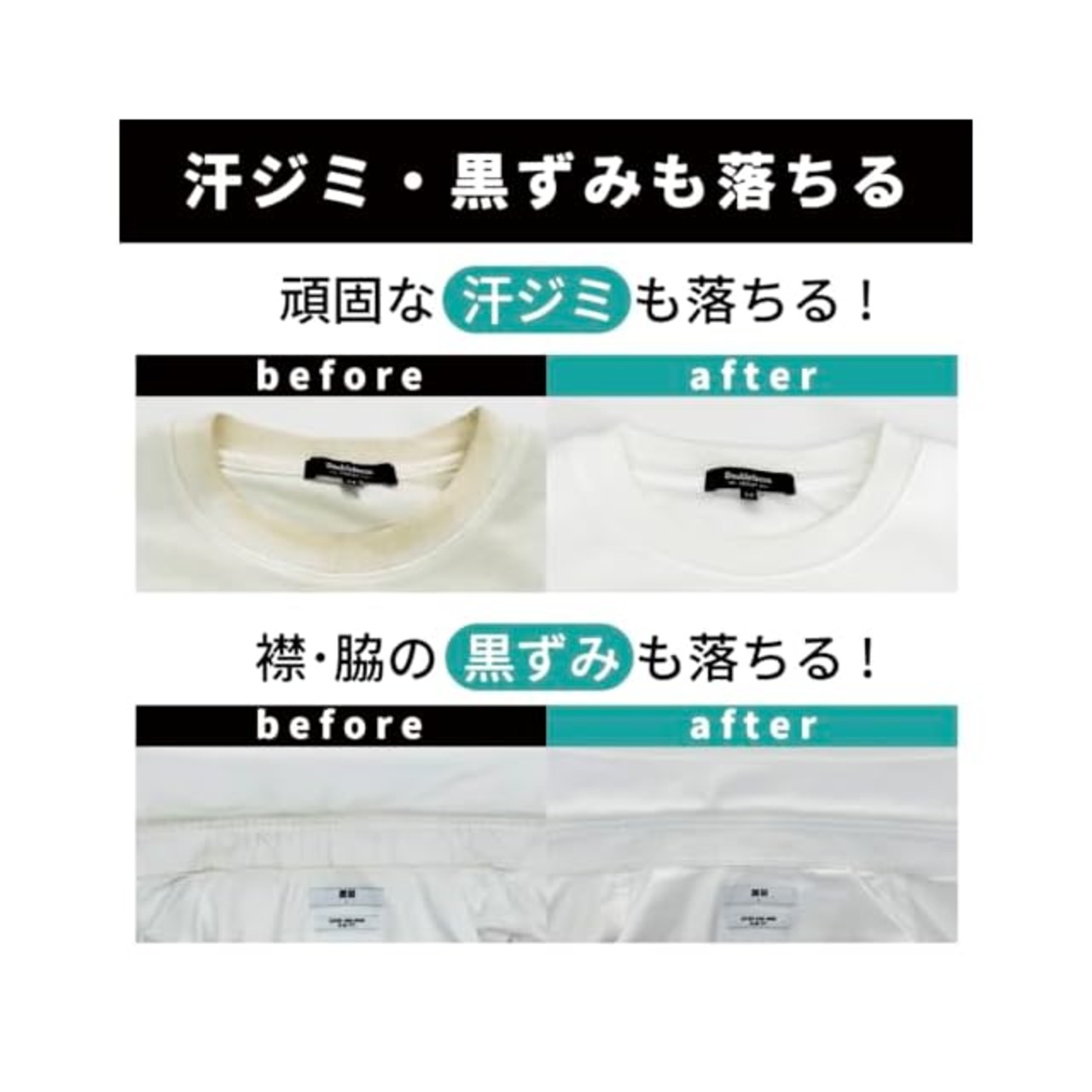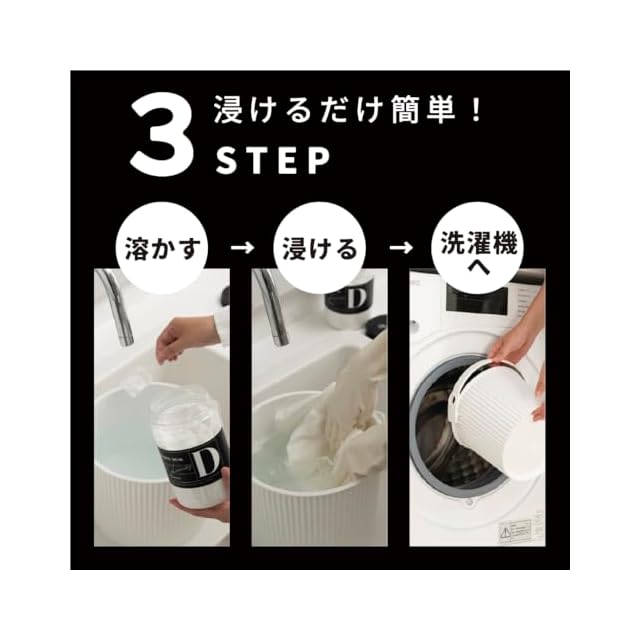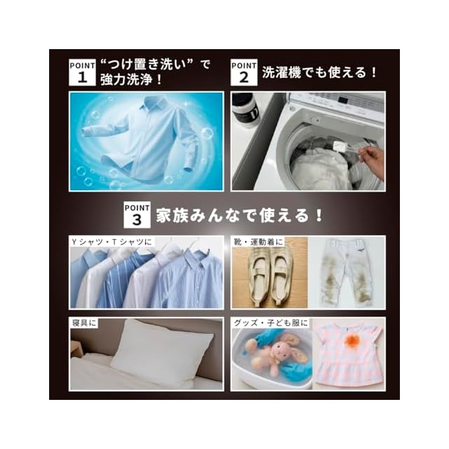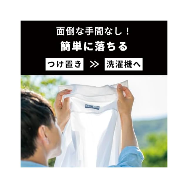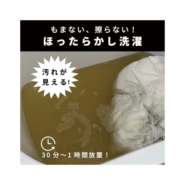 【つけ置きして洗うだけで高洗浄】 面倒なもみ洗い不要。30分以上つけ置きしてから洗濯機に入れるだけで、ニオイも汚れもスッキリ落とせます。