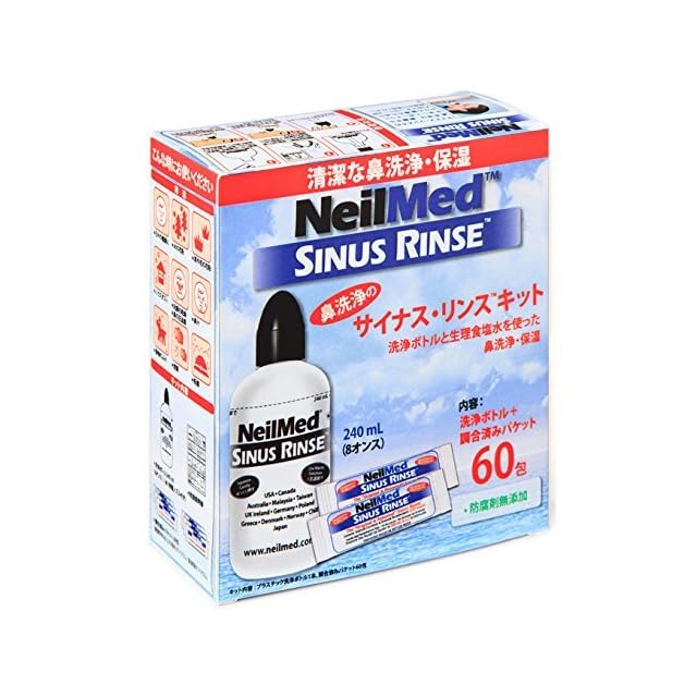 ●サイナス・リンス キットは、洗浄ボトルと生理食塩水を使った“鼻洗浄""のキットです。<BR> ・サイナス・リンス キットは、鼻洗浄用のボトル容器と、調合済みサッシェ(粉末を密封した小袋)とで構成されます。<BR> その調合済みサッシェは、約96%の塩化ナトリウムと約4%の重炭酸ナトリウムを含み、240mLの水と混合して洗浄液を生成します。<BR> ボトル容器を軽く押すと、洗浄液がキャップの先端から鼻腔に噴射され、鼻腔内のゴミやチリ、花粉を洗い流します。<BR> 毎日の健康を維持するために、1日1~2回の鼻洗浄をお勧めします。 <BR><BR> ●ニールメッドサイナス・リンス キットのココがすごい!<BR> 1.体液に近い洗浄液で洗うから「つーん」としない! <BR> 2.1回使いきりタイプの調合済みサッシェなので簡単・便利! <BR> 3.使いやすい独自開発システムのボトル形状タイプ! 片手で簡単に使用できます。<BR> 4.たっぷりの洗浄水で、鼻腔を優しくしっかり洗います! <BR><BR> ■使用方法 <BR> 1.キャップを開ける。 <BR> 2.水道水は煮沸して体温(36℃)程度に冷ます。精製水を準備し、体温(36℃)程度に温める。(レンジ使用も可) <BR> 3.適温になった精製水(煮沸水)240mLに、粉末(1包)を入れて完全に溶かし、洗浄液を作る。<BR> 4.キャップをボトルにしっかり取り付ける。 <BR> 5.頭を下げ、口で息をしながら、ボトルをゆっくり握り液を押し出すと、もう一方の鼻孔から洗浄液が流れ出る。 <BR> 6.残り半分程度の洗浄液を使い、もう一方の鼻孔から同じ作業をおこなう。最後に鼻をやさしくかむ。<BR><BR> ■洗浄方法 <BR> 1.使用後、残った洗浄液を捨て、ボトル、キャップ、チューブを流水で洗います。 <BR> 2.ボトルに水を入れ、キャップをしたボトルを激しくシェイクします。<BR> ※このとき、中に入れた水が飛び出さないよう、キャップの先端を指で押さえます。 <BR> 3.ボトルを強く押し、チューブとキャップの内側を洗浄します。サッシェの成分(塩分)がボトル内に残らないようにしてください。<BR> ※手のひらなどでキャップ先端をカバーし、水が飛び散らないようにします。 <BR> 4.ボトルを空にして、キャップを外し、水切り用のグラス立てなどを使い、それぞれに水分が残らないように乾かします。<BR> 汚れがひどい時は、ボトルに水を入れた後、食器用洗剤を数滴垂らし、3の手順で洗ってください。<BR> 洗浄後は、洗剤の成分が残らないように、十分に洗い流してください。<BR>