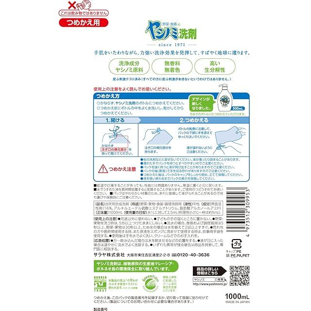 商品名:【ケース販売】 サラヤ ヤシノミ洗剤 スパウト 詰替用 1000ml×8個入