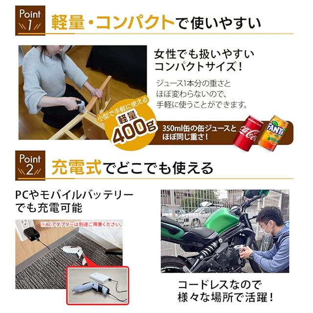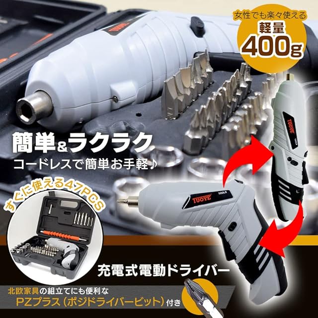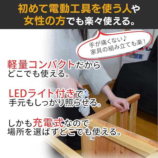 ◇軽量コンパクト! 女性でも手軽に使えるサイズ感。 購入した家具の組立にとても便利なアイテムです。 ◇左右回転切替が可能 ネジを締めるのも緩めるのも簡単に出来ます。