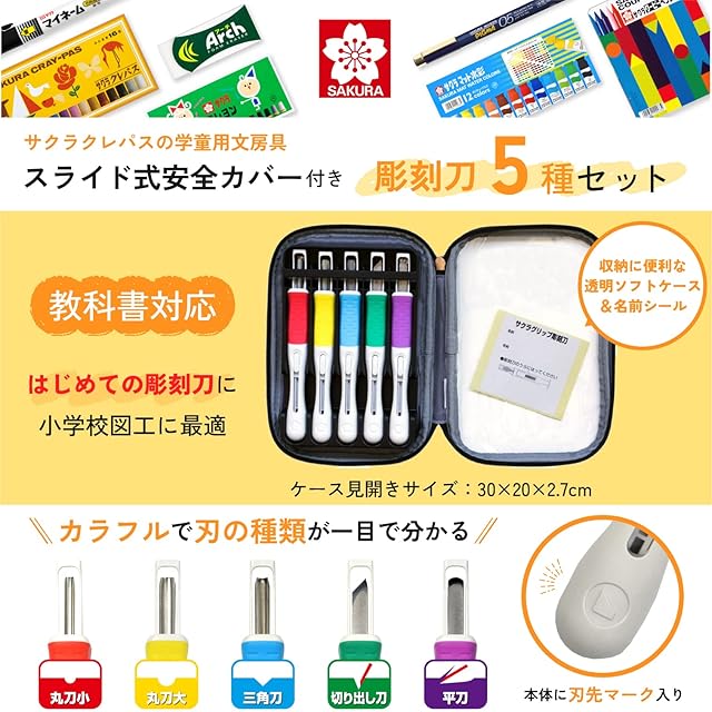 商品名:サクラクレパス 彫刻刀SA スライド式安全カバー付き EHTS-5A