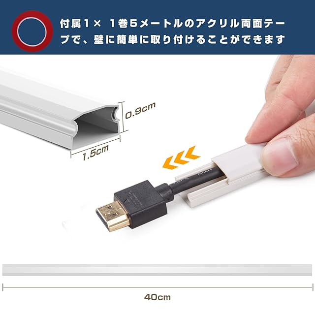 配線カバー モール 配線隠しカバー コードプロテクター ケーブルカバー モール 電線ケーブルカバー ケー インストールが簡単 (ホワイト,10本セット, 40* 1.5*0.9cm) | emishop315