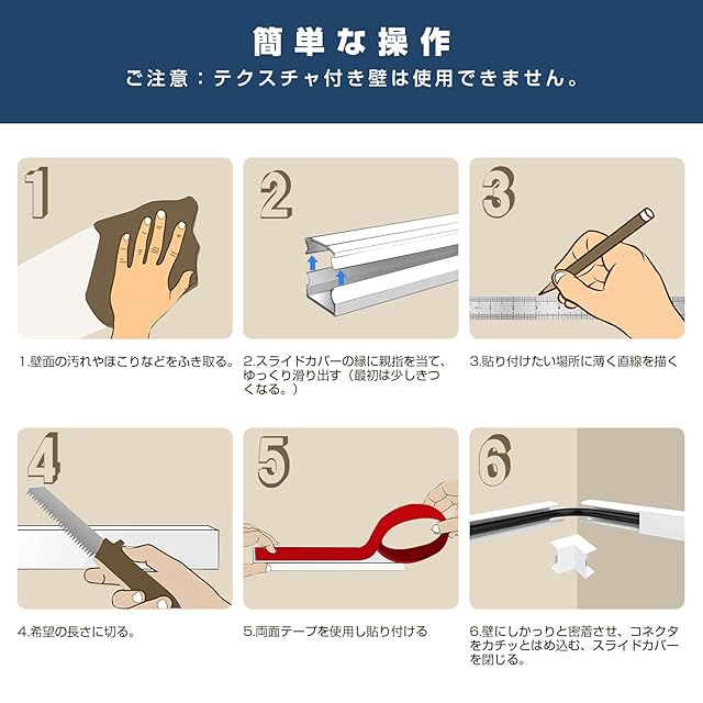【耐圧経用/良い難燃性】コード隠しカバー葉堅牢なPVC材料で作られている丈夫で耐久性があり、 軽量で、耐摩耗性があり、高い強力な外力出ない場合に変形しにくい 同時に難燃性、漏電防止、ケーブル、が良好な保護を受ける 漏れている電線はなく、子供やベットも電線をかじることはありません。 また、塗装によって家の装飾色と一致させることもできます