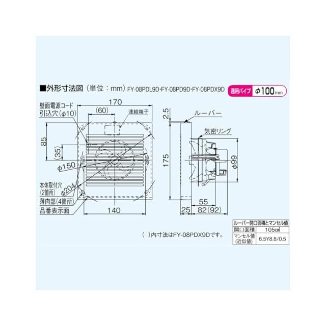 商品名:パナソニック(Panasonic) パイプファン 排気形 (速結端子) FY-08PD9D