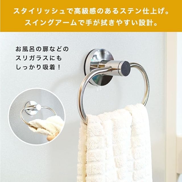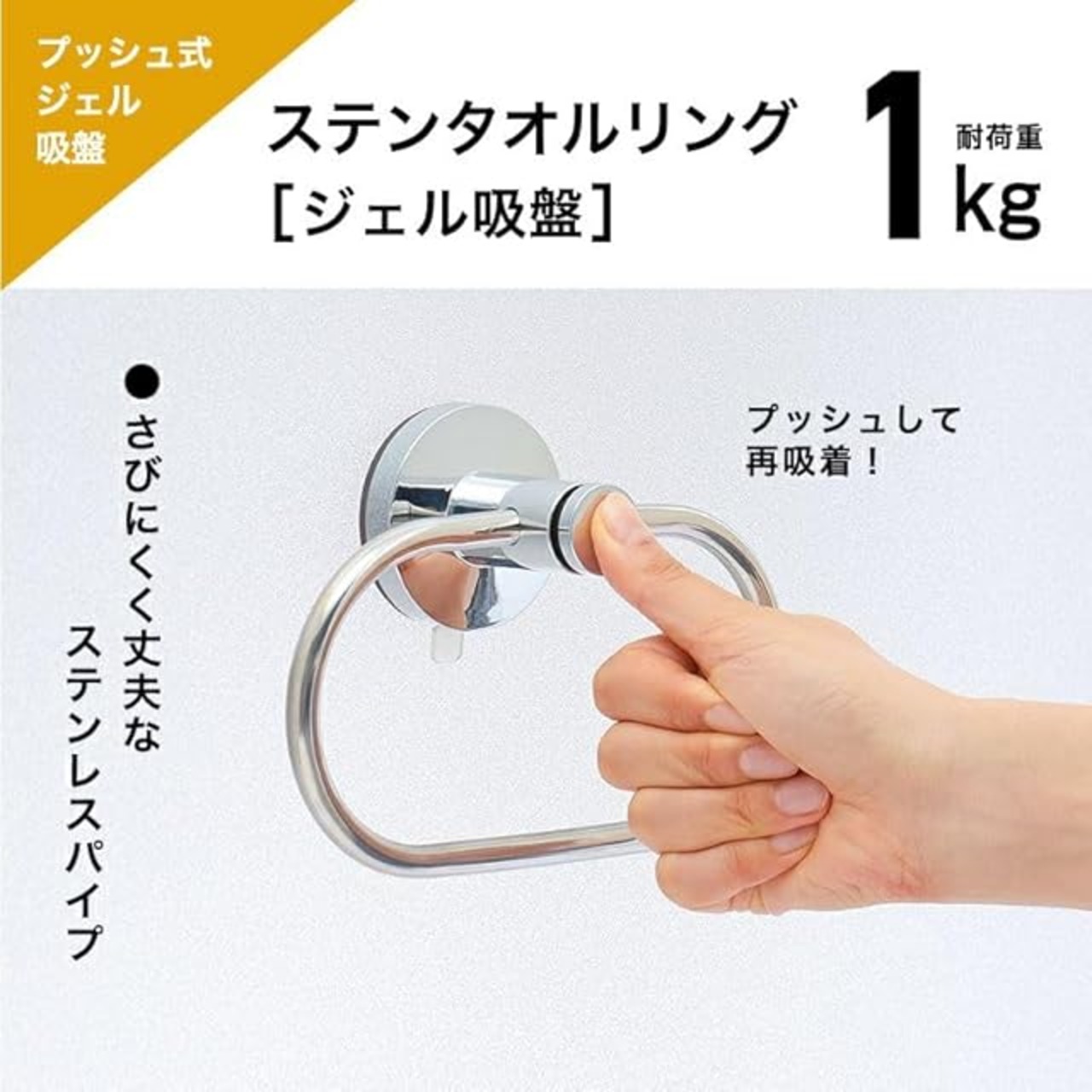 商品名:すごい吸盤 ステンレス タオルリング (耐荷重1kg) ザラザラ壁対応 密着強力ジェル 落下防止機能