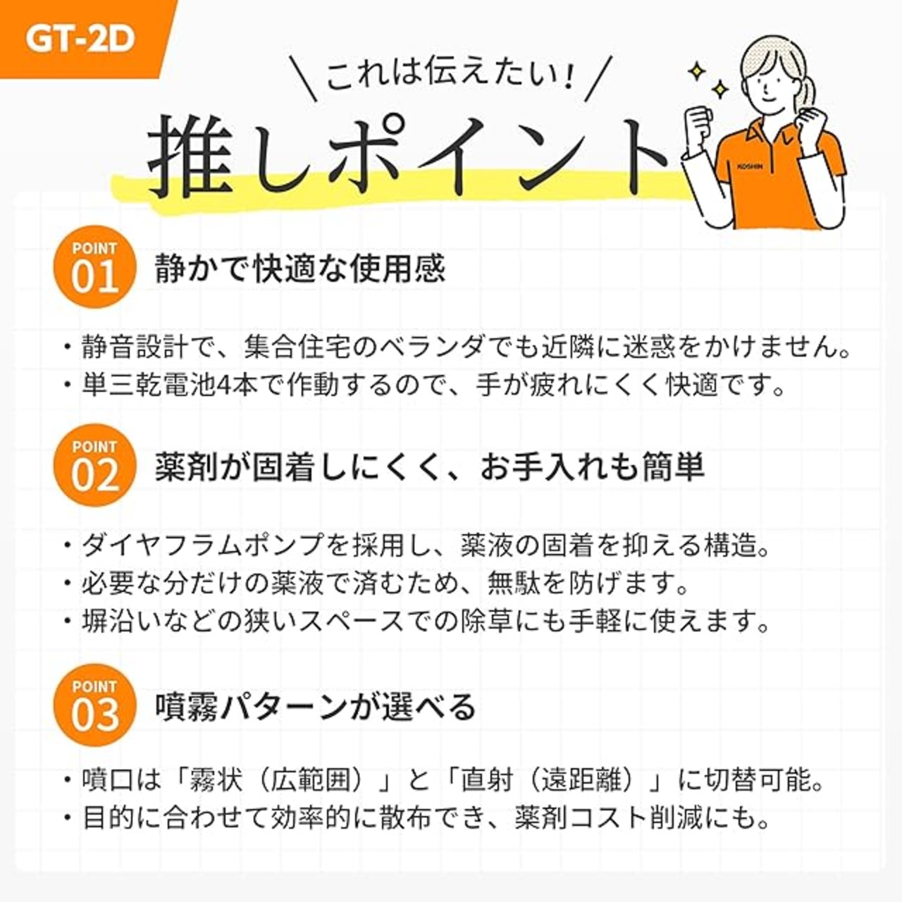 商品名:工進(KOSHIN) 乾電池式 噴霧器 GT-2D 除草 消毒 小型 軽量 2L 肩掛け式