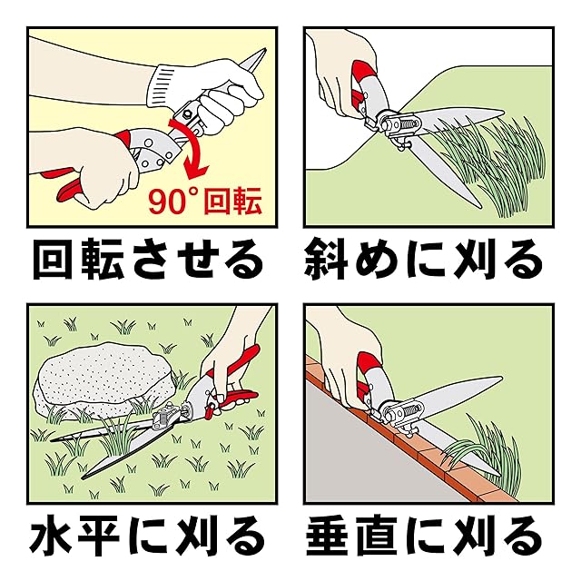 飛び石の間や花壇の際の芝生の刈込や、芝刈機の通らない場所での芝刈りに