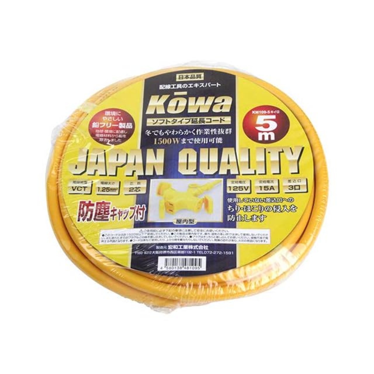 商品名:宏和工業 kowa ソフトタイプ 延長コード 15A・5m 3ツ口 キイロ KM109-5 日本製