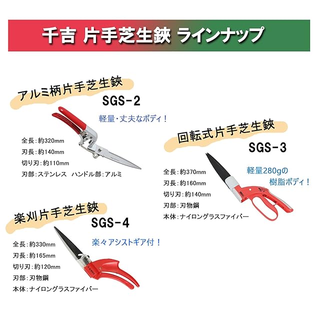 商品名:千吉(Senkichi) アルミ柄 片手芝生鋏 全長約320mm SGS-2