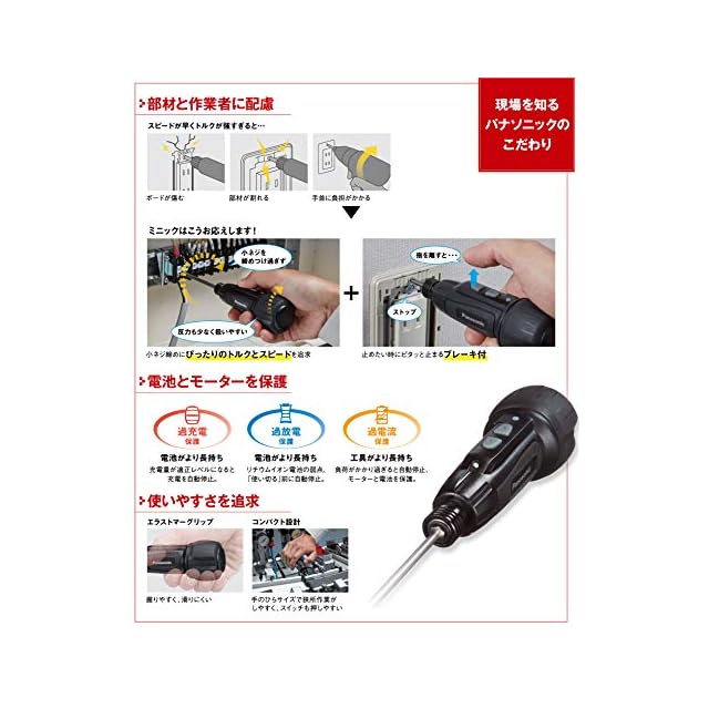 パナソニック(Panasonic) USB充電ミニドライバー 3.7V ミニック miniQu 内蔵電池 850mAh 本体・USB充電ケーブル・ビット5本セット EZ7412S-B ブラック | emishop315