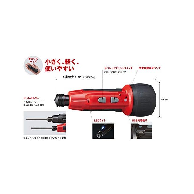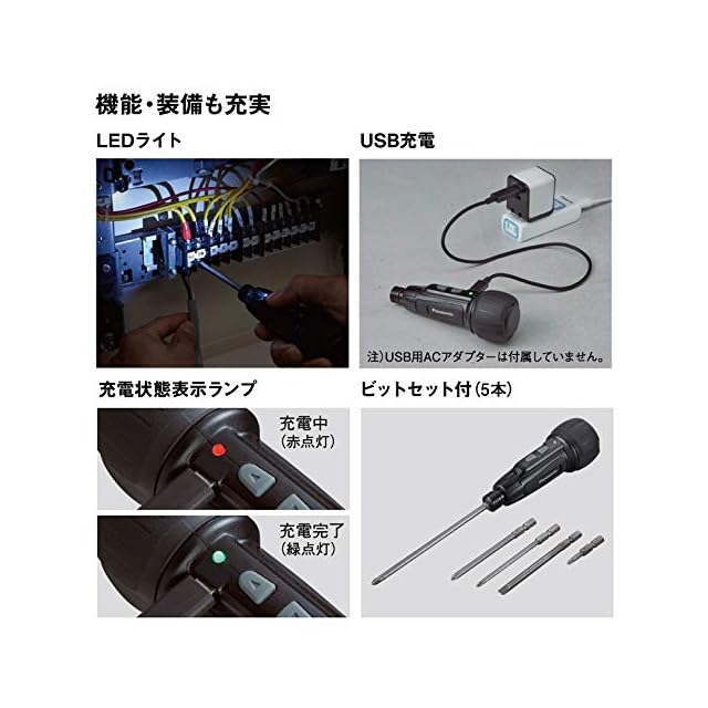 商品名:パナソニック(Panasonic) USB充電ミニドライバー 3.7V ミニック miniQu 内蔵電池 850mAh 本体・USB充電ケーブル・ビット5本セット EZ7412S-B ブラック