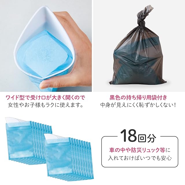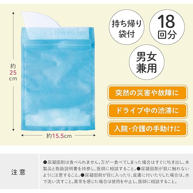 商品名:コモライフ サッと使える緊急携帯トイレ 18回分 600cc 非常用トイレ 簡易 携帯 トイレ 防災 男女兼用 凝固剤