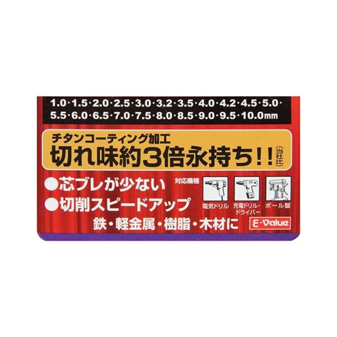 商品名:イーバリュー(E-Value) 鉄工用ドリルセット チタンコーティング 丸軸 21本組 ETD-21S-T