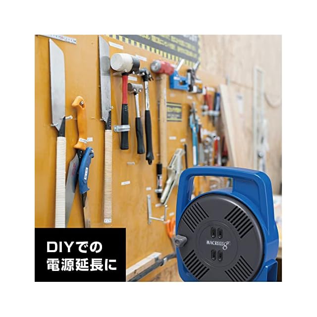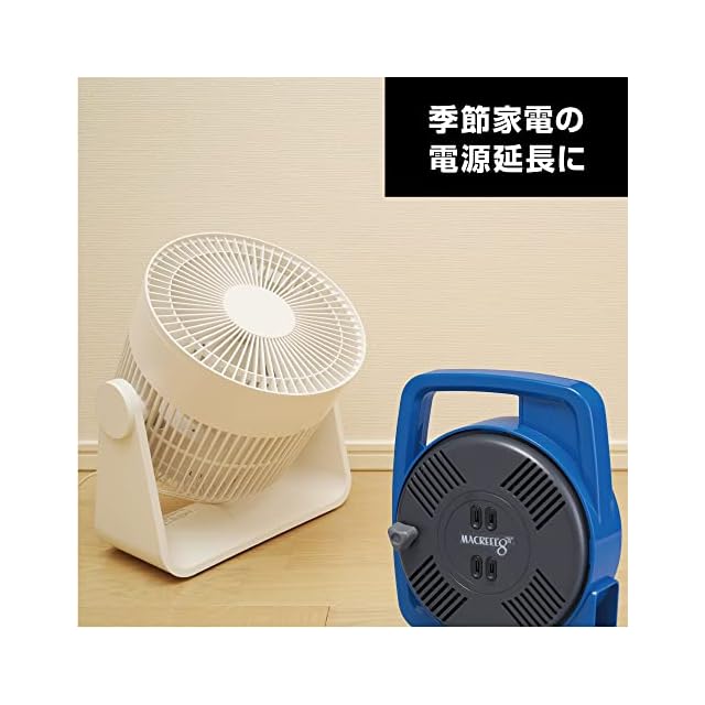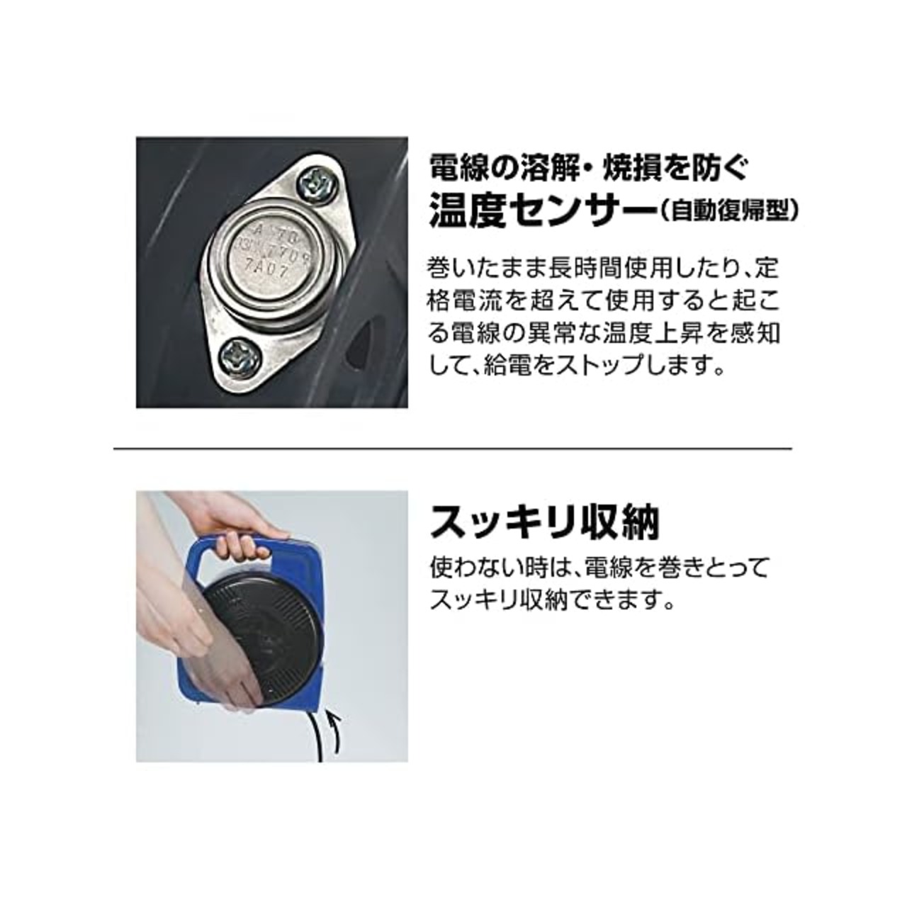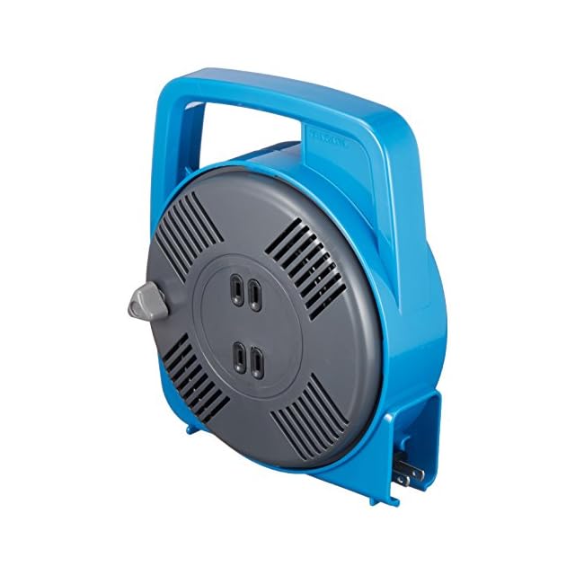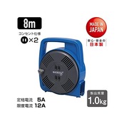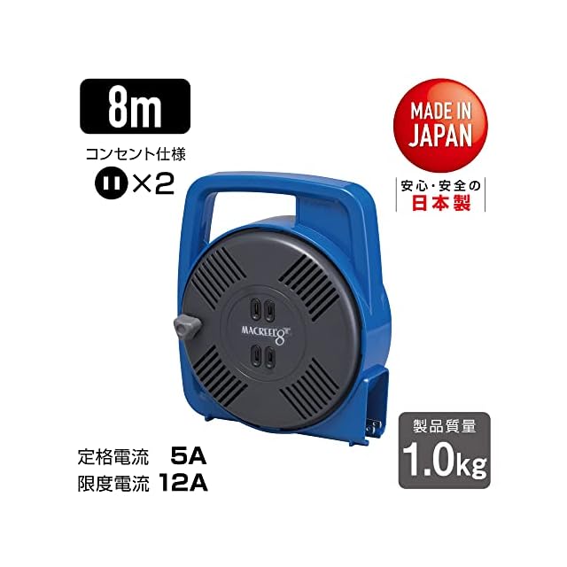 ハタヤ (HATAYA) コードリール 屋内用 ホームリール 100V型 手動巻 8m 温度センサー内蔵 (電線溶解防止機能) コンセント2個 コンパクト 家庭用 ギフト用 マックリール MS-8-B ブルー | emishop315